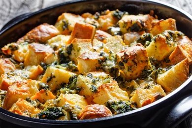 FAQs for Bacon Cheddar and Spinach Strata: