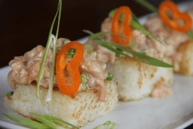Traditional sushi dates back centuries in Japan, focusing on vinegared rice paired with fresh fish. The crispy rice variation is a modern innovation, often associated with upscale fusion dining. It gained widespread popularity in the U.S. and globally through trendy restaurants and social media, blending classic sushi elements with a crunchy twist.