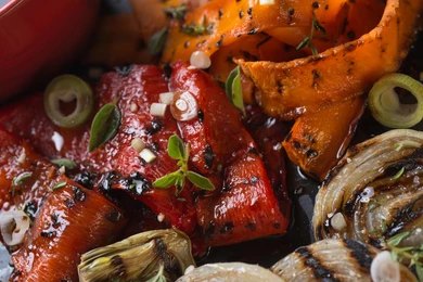Grilling vegetables has long been a tradition in Mediterranean and European cuisines, where fresh produce is often cooked over open flames. Balsamic vinegar, originating from Modena, Italy, has been used for centuries to enhance dishes with its rich, sweet-acidic flavor. Combining grilled vegetables with balsamic vinegar is a modern classic that blends rustic cooking with refined taste.