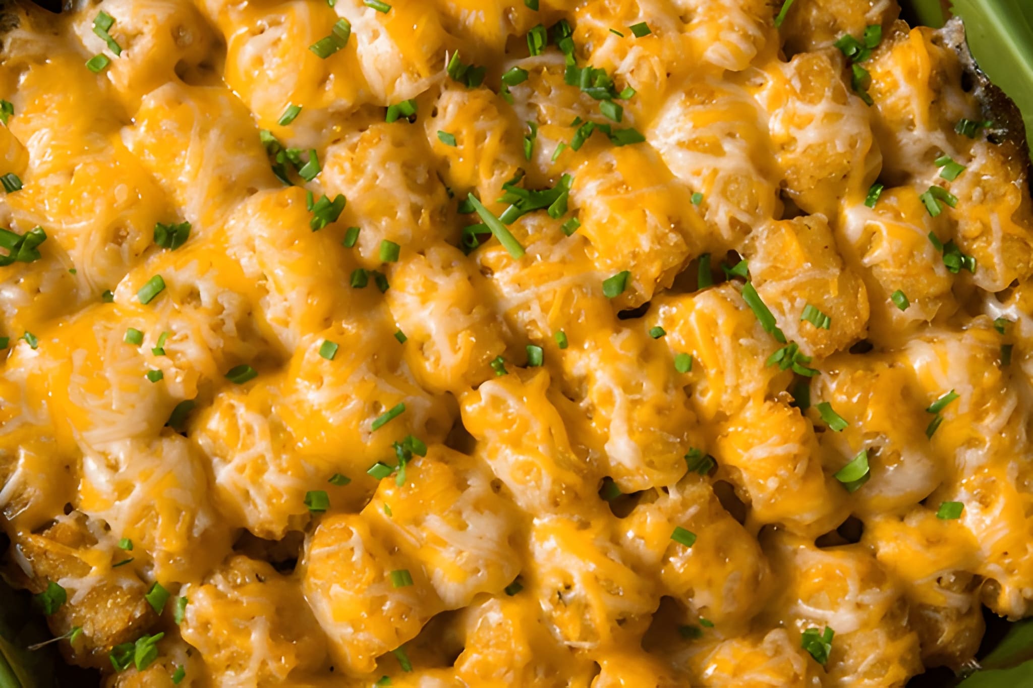 - Bake uncovered for 40–45 minutes or until the tater tots are golden and crispy.